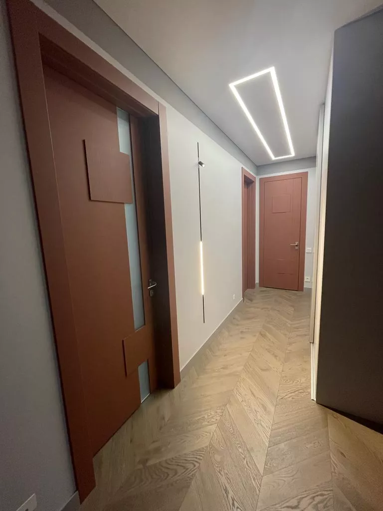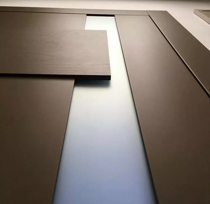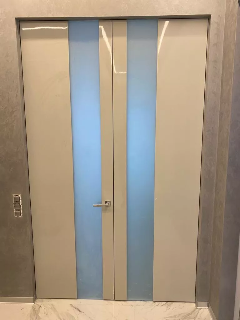Уникальная, неповторимая линейка, выполняемая в гладкой эмали со шпонированными  элементами. Прямым линиям мы придали объем и разную текстуру, добавили света в виде стеклянных вставок. Коллекцию можно окрасить по палитрам RAL или NCS, а широкий размерный ряд позволит установить двери как в просторный лофт, так и в уютную небольшую студию.