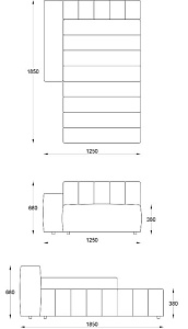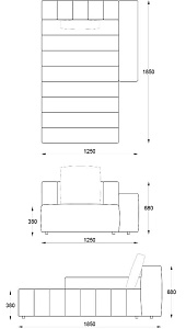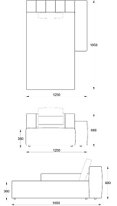 • Лежанка с подлокотником правая 1250х1850хН680