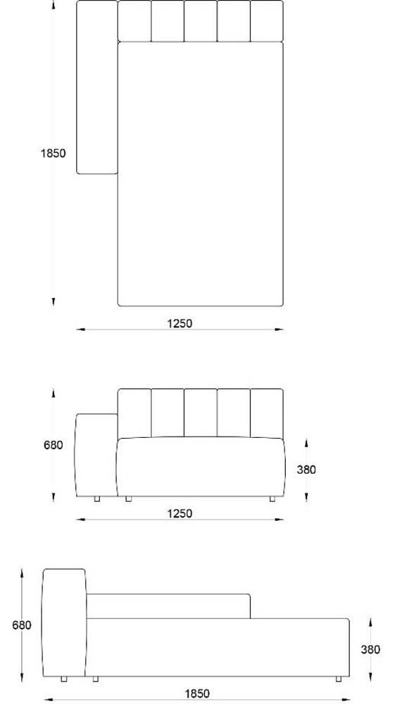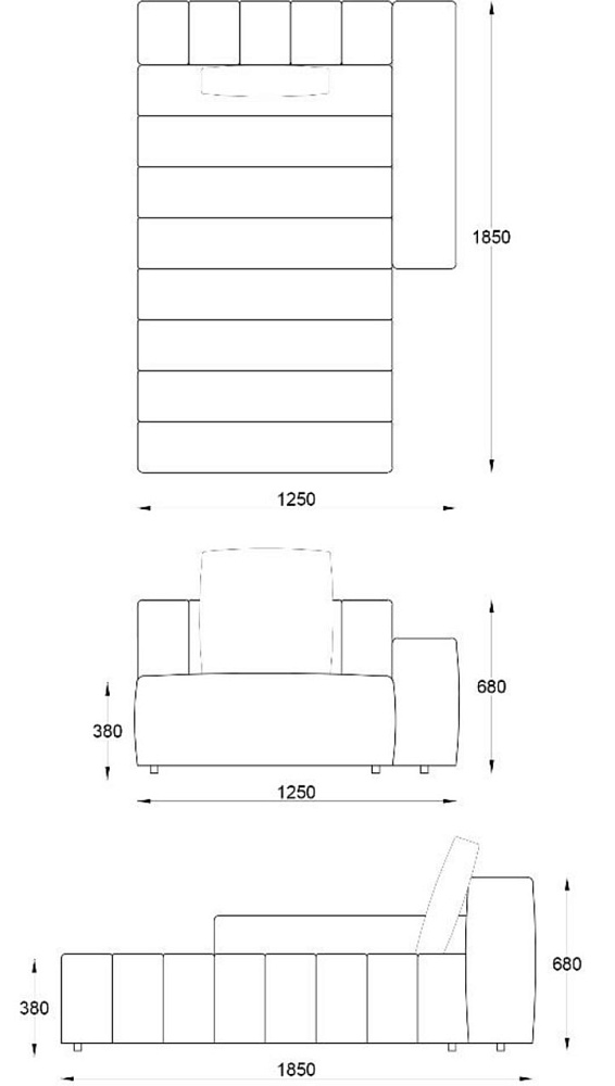 • Лежанка с подлокотником левая с отстрочкой 1250х1850хН680