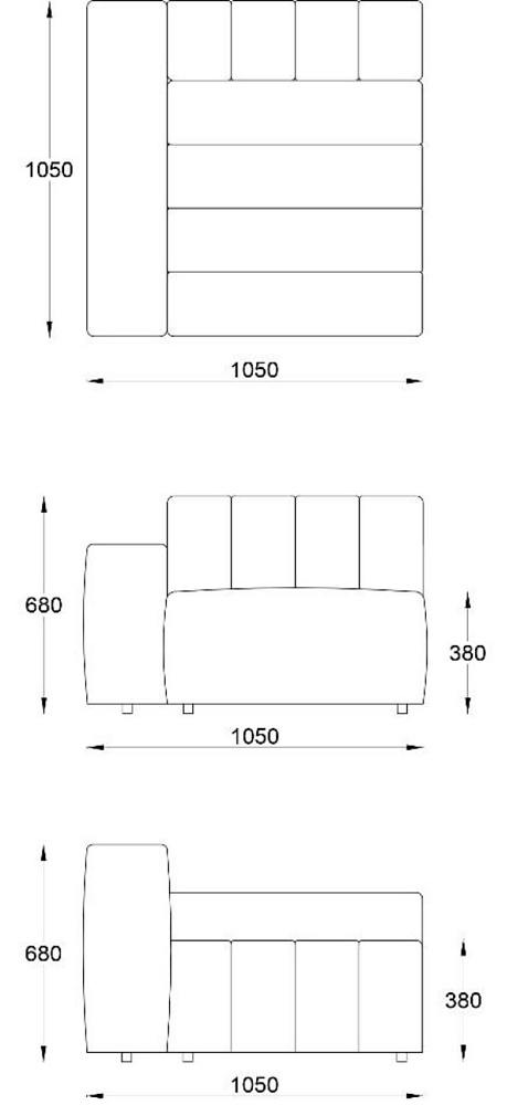 • Угловой модуль правый с отстрочкой 1050х1050хН680