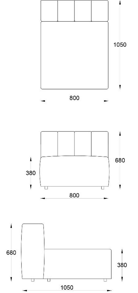 • Лежанка без подлокотника без отстрочки 800х1850хН680